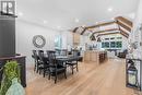 NEW PRICE & STEPS TO SUNSET POINT, GEORGIAN BAY - this custom Vandermeer-designed 5-bedroom home offers over 3,700 sq. ft. of beautifully finished living space, just steps from Georgian Bay and the trails at Sunset Point. Blending timeless craftsmanship with modern comforts, the main floor features soaring 12-ft cathedral ceilings with rustic beams, a chef-inspired kitchen, and a spacious family room with a cozy gas fireplace; perfect for entertaining or quiet evenings in. The main-floor primary suite includes a luxurious 5-piece ensuite, while a versatile upper-level loft with its own fireplace offers the perfect space for a home office or private retreat. The fully finished lower level adds even more functionality with a large rec room, wet bar, gas fireplace, two additional bedrooms, and a full bath; ideal for guests or extended family. Practical touches like a mudroom with garage access add to the home's everyday convenience including potential for in-law suite. Located minutes from Blue Mountain, ski resorts, golf, waterfront parks, and vibrant downtown Collingwood, this property delivers both luxury and lifestyle. A rare opportunity at a compelling price. (id:27)